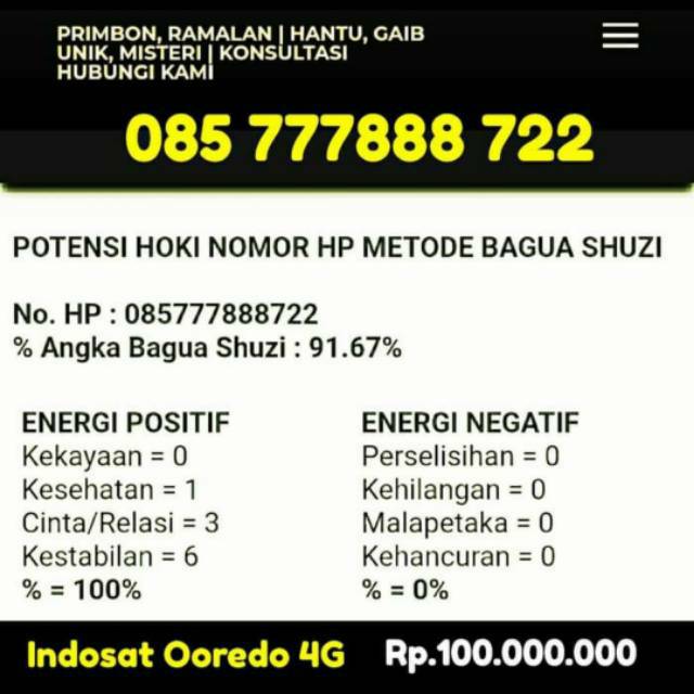 Masukan Nomor HPTelp. Nomor hp yang bagus ajab nebebtujab keberuntungan hidup usaha atau bisnis hingga membuka pintu rezeki. Hal ini diyakini memiliki efek yang positif pada kekayaan internal seseorang yang memiliki angka 7 di bagian akhir nomor hp-nya.